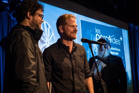 Le réalisateur québécois Félix Lamarche recevant son prix du jury en août 2018 dans le cadre du 10e Festival Les Percéides.